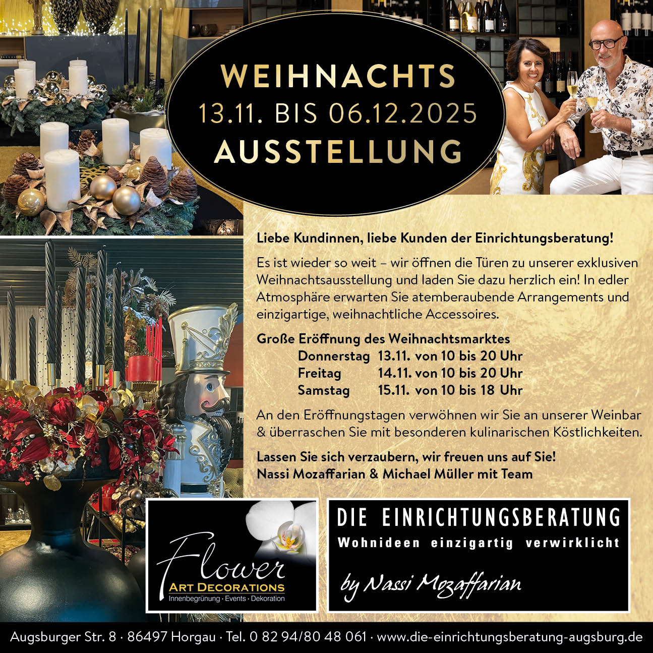 Es ist wieder so weit – wir öffnen die Türen zu unserer exklusiven Weihnachtsausstellung und laden Sie dazu herzlich ein! In edler Atmosphäre erwarten Sie atemberaubende Arrangements und einzigartige, weihnachtliche Accessoires.